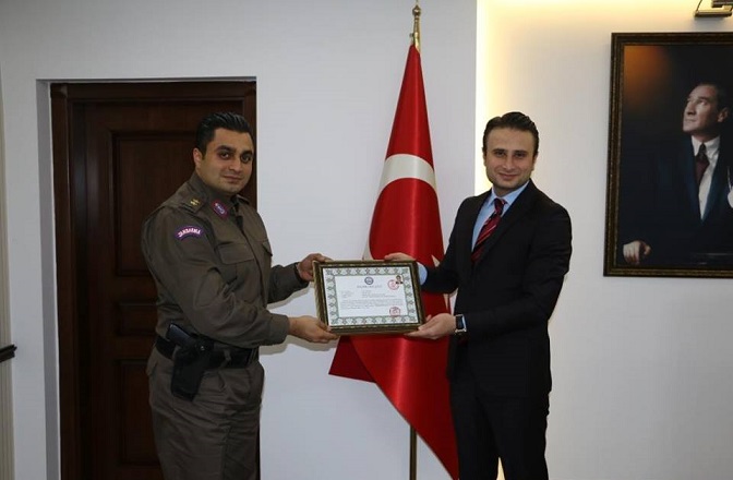 Gökçebey Kaymakamı Bünyamin BİLGİN, İlçe Jandarma Komutanı Üsteğmen Onur Şahbaz’ı başarısı belgesi ile taltif etti.  Gökçebey Kaymakamı Bünyamin BİLGİN,” İlçe Jandarma komutanı Onur ŞAHBAZ’ ı sorumluluk bölgesinde emniyet ve asayişin temini, suç ve suçluyla mücadele ve önleme faaliyetlerinde sorumluluğunun üzerindeki gayret ve özverili çalışmalarından dolayı tebrik ederek başarı belgesi ile taltif ederek, Kendisine meslek hayatında başarılar diliyoruz.” |