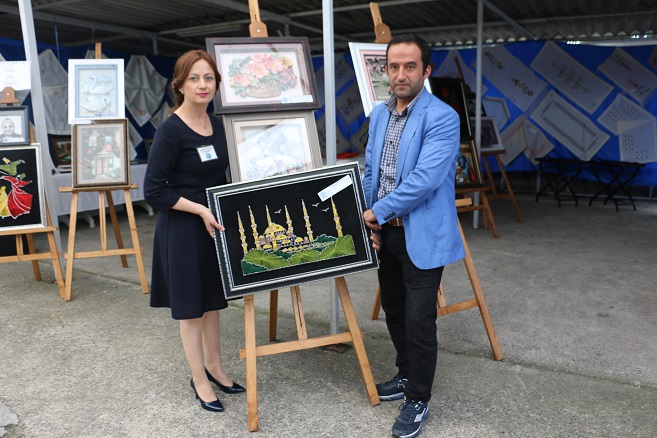 Ve daha sonra Kursiyerler tarafından yapılan El Sanatları sergisini tek tek gezerek usta öğretici ve kursiyerleri kutlayan İlçe Kaymakamı Bünyamin Bilgin,” Başarılı çalışmalarınızın devamı bekliyoruz” dedi.