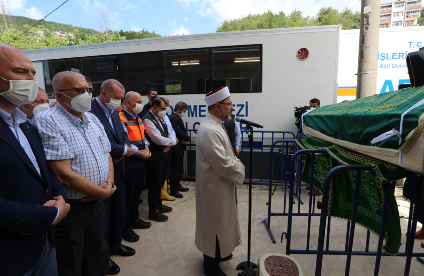 Cumhurbaşkanı Erdoğan, sel ve su baskınlarının meydana geldiği Kastamonu'nun Bozkurt ilçesinde hayatını kaybeden Fatih Keşaplı için kılınan cenaze namazında saf tuttu.